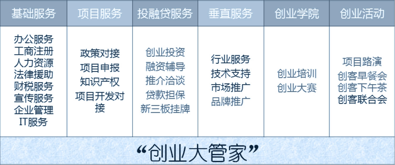 创业者能够得到一个量身定做的服务方案,一个相互之间交流的平台, 一个向全国消费者和合作伙伴自我展示的舞台和创业导师。